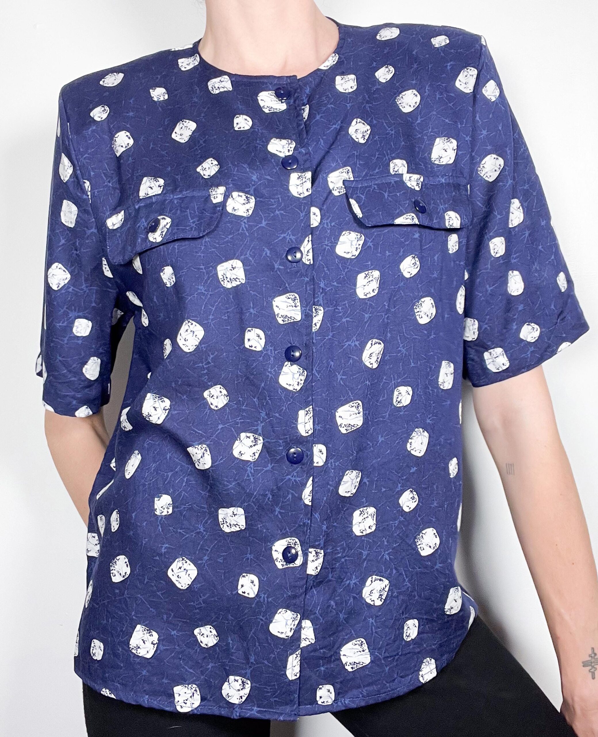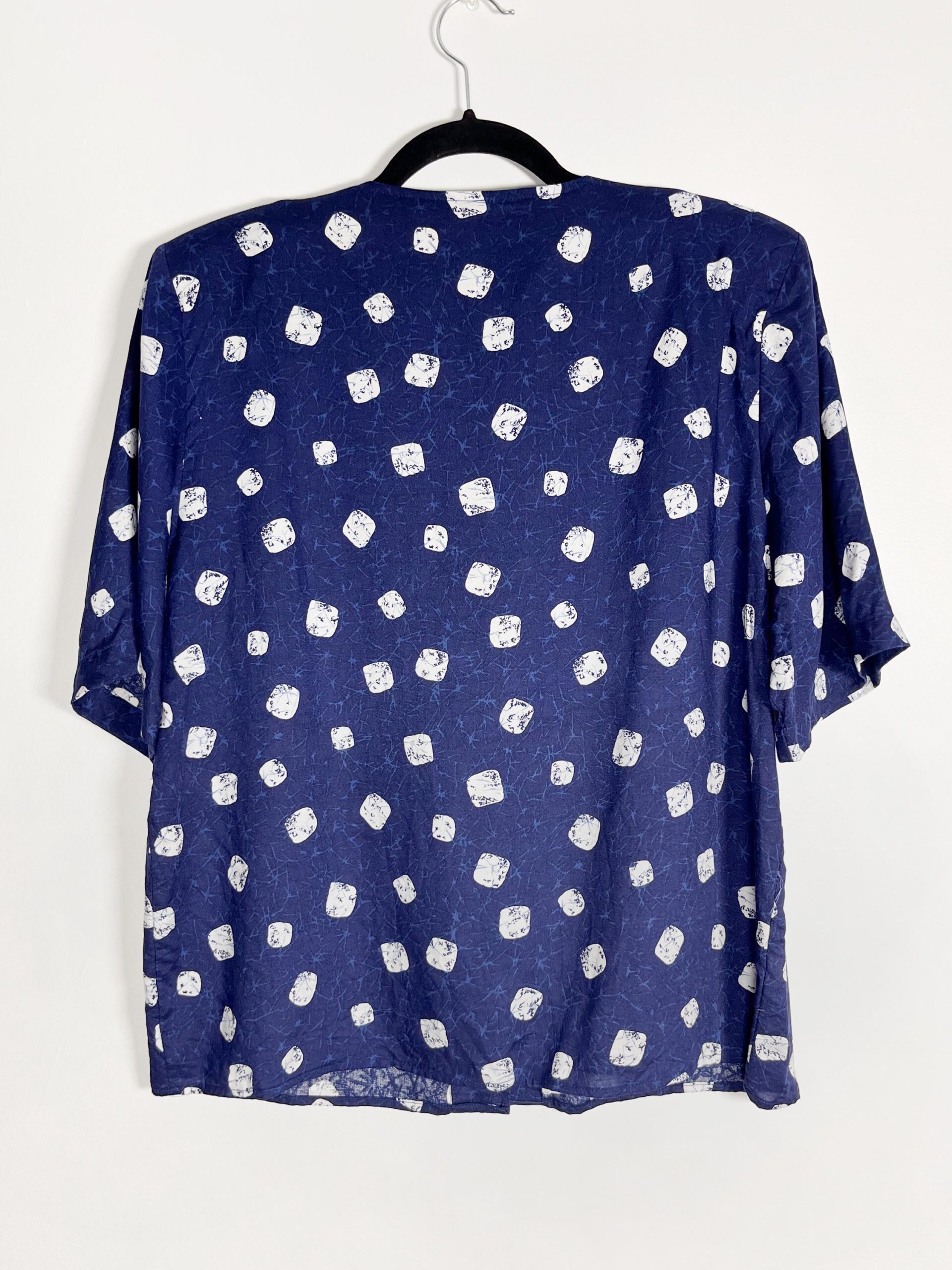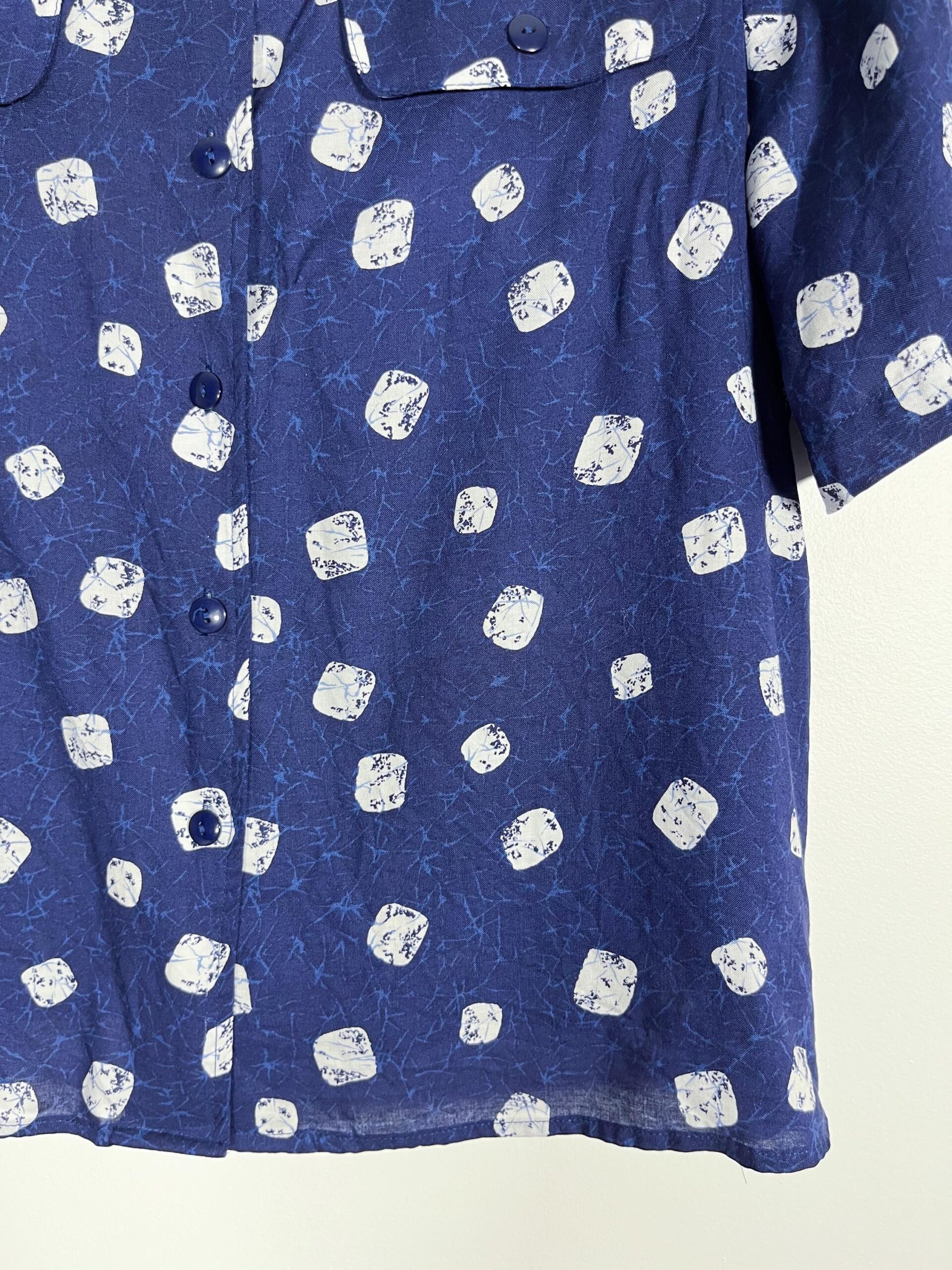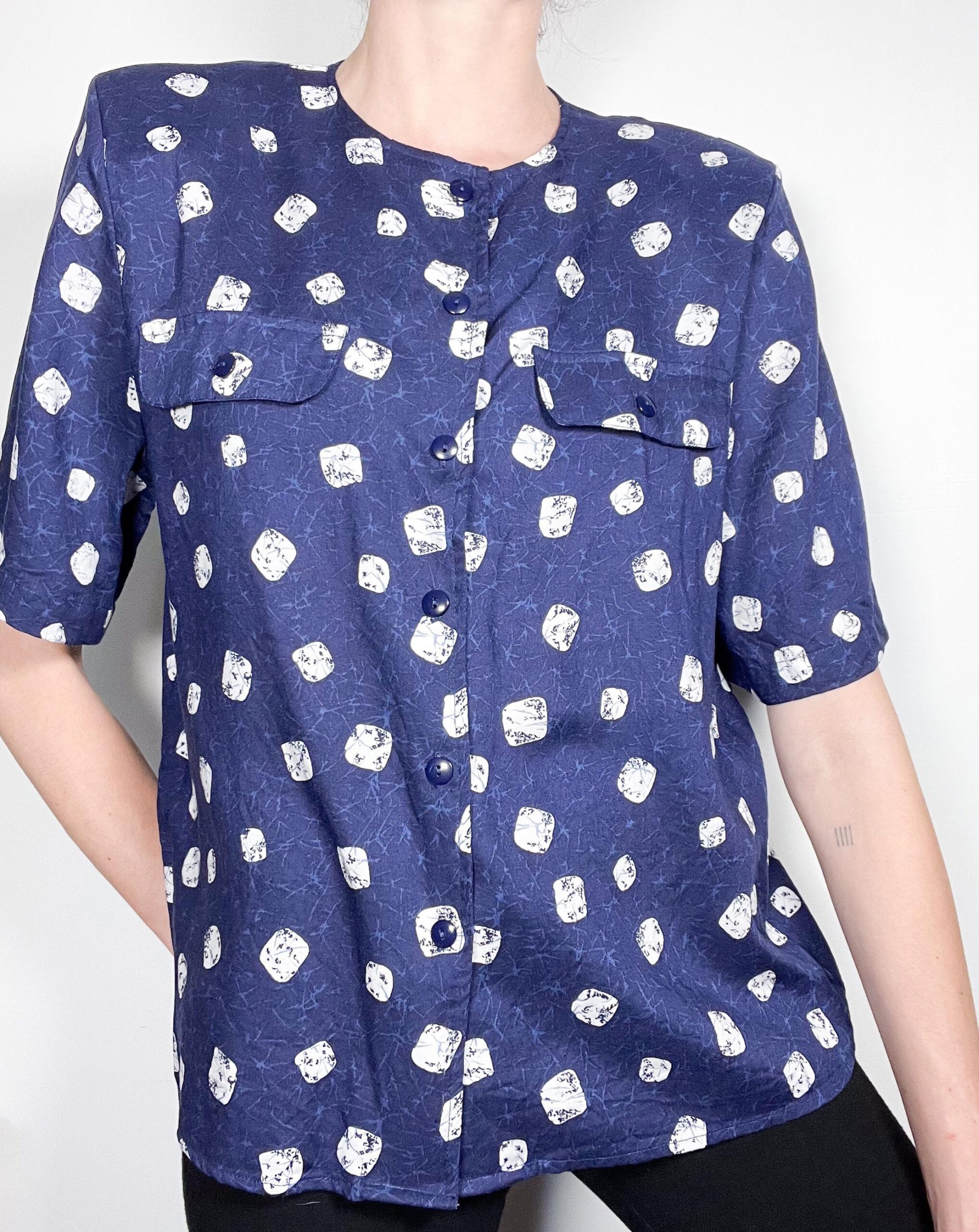 Vintage 90s short sleeved blouse navy with white abstract spots