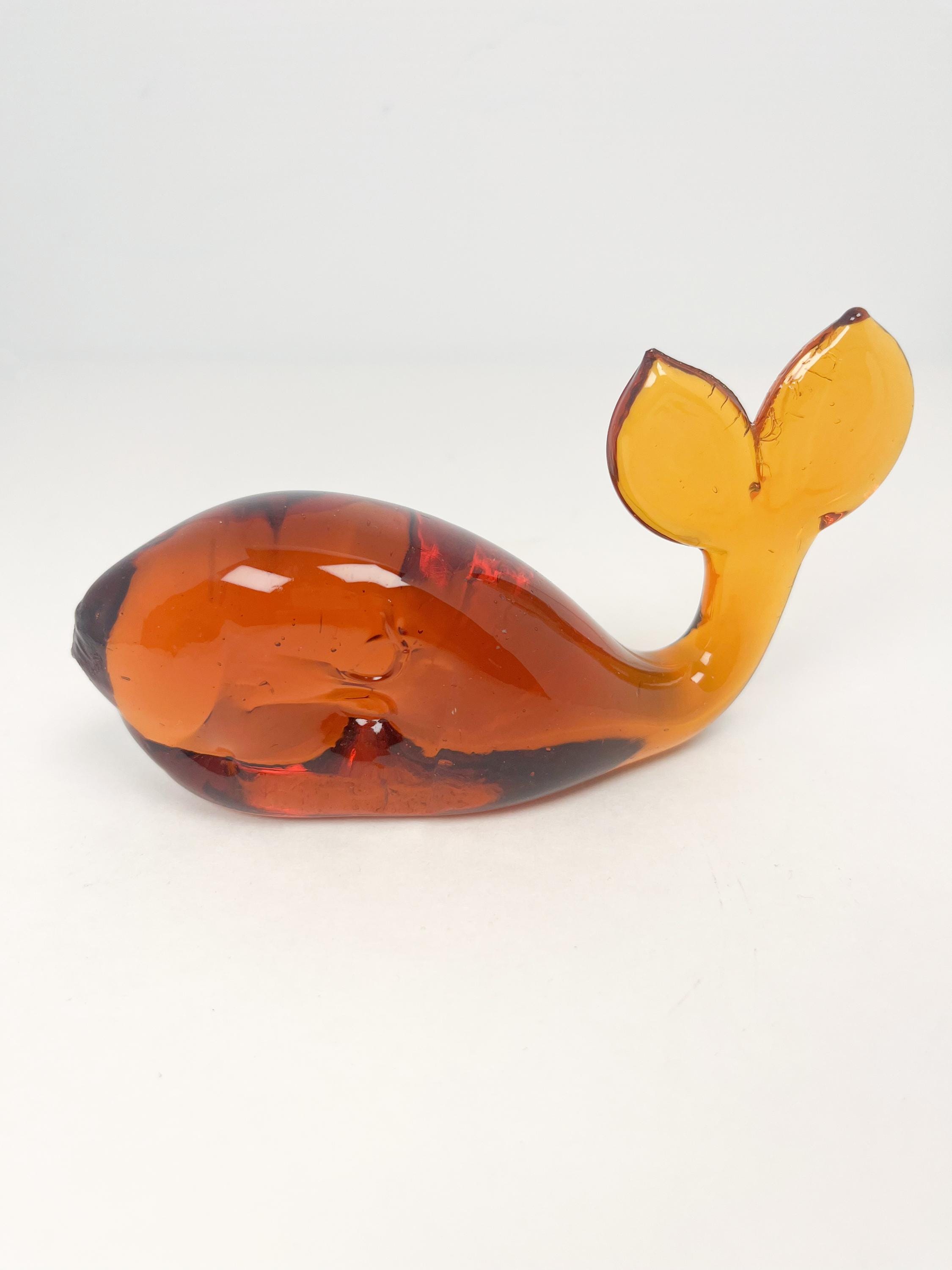 Vintage hand blown amber coloured glass whale paperweight